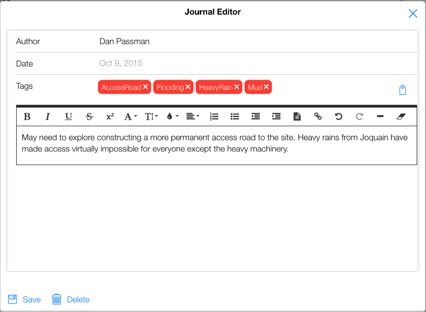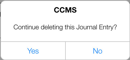 Figure 156 - Tap the Delete button to remove Journal Entry