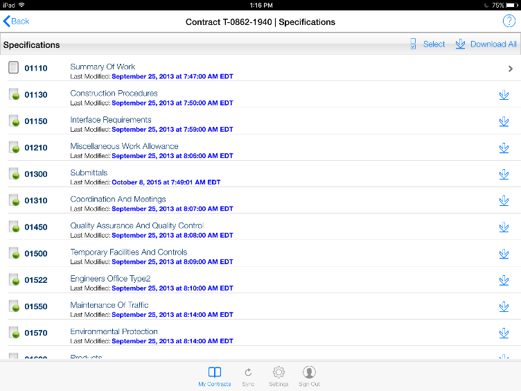 NOTE: If a Spec file is successfully downloaded, the Down Arrow will be replaced with a > symbol on the record line