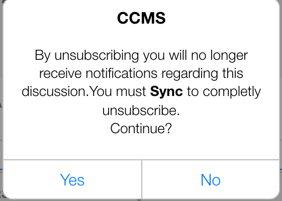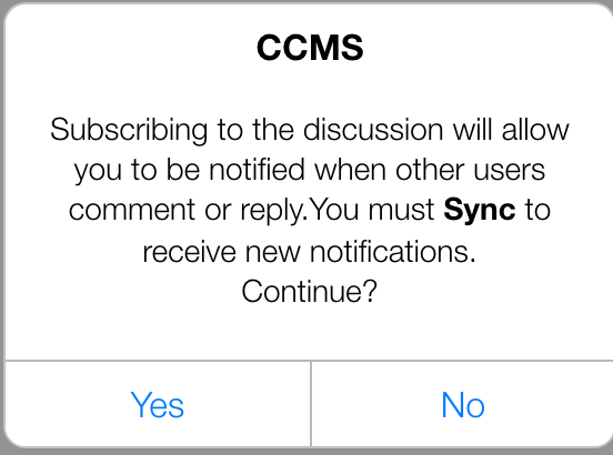 Tap Yes to subscribe. NOTE: You must sync to setup the subscription with the CCMS Database.