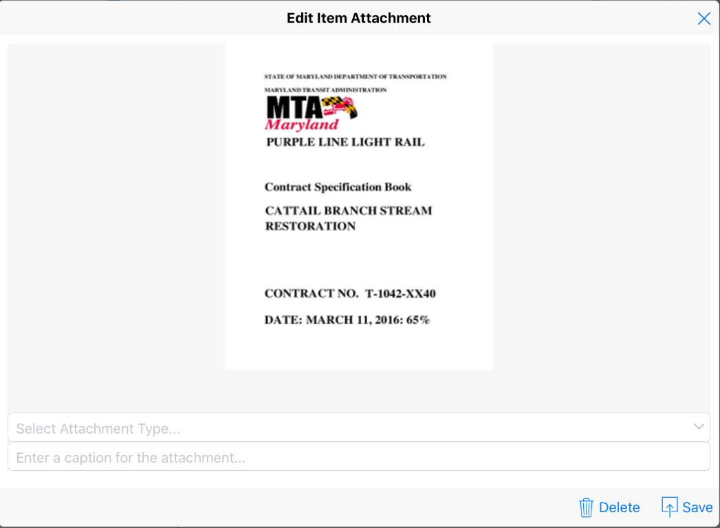 - The selected file will be downloaded to your device. Depending on the size of the file the download may take a few moments. After the download has completed the Edit Attachment form will be loaded. Use this form to select the attachment type and enter an optional caption for the attachment.