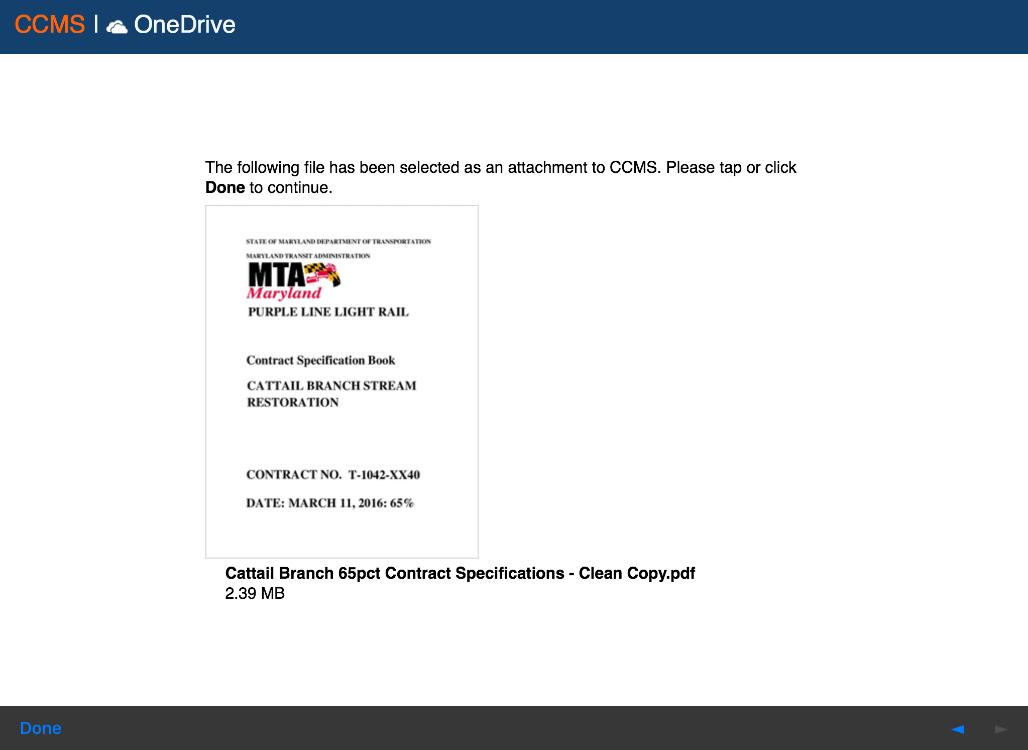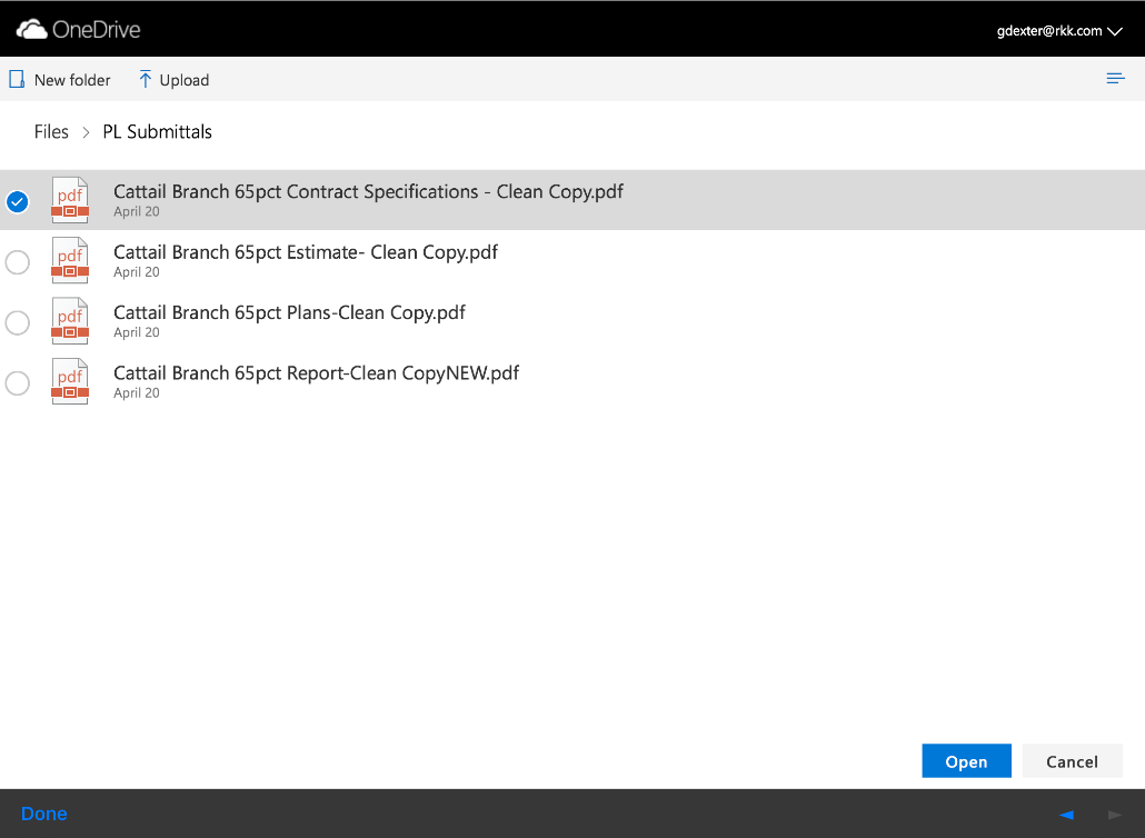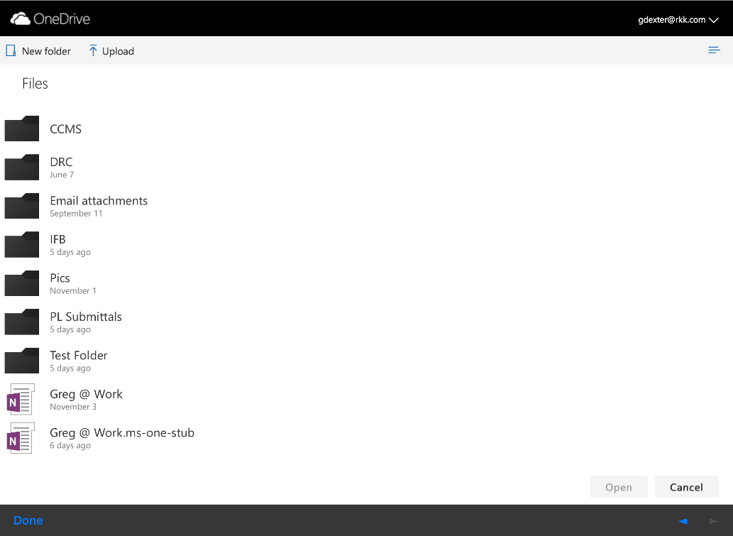 - Locate the file you wish to attach to CCMS and tap Open. Please note, currently the CCMS OneDrive module only supports single file selection from OneDrive.
