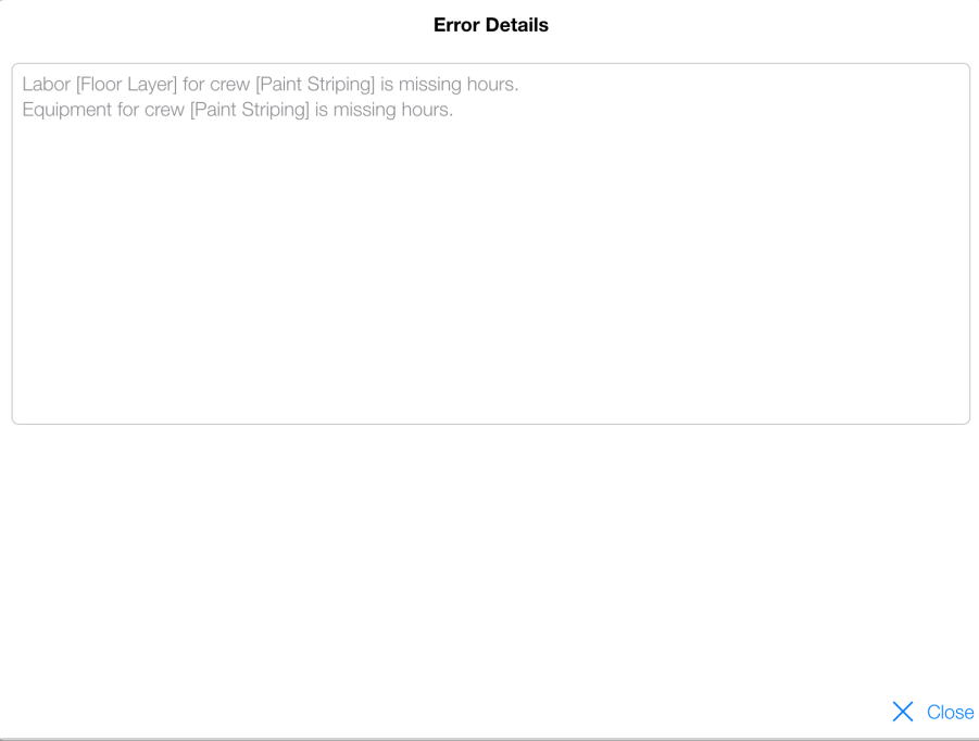 After a Sync has been completed, a message box will appear indicating either that the ‘Sync’ was successful, or that there were errors that need to be reviewed. If there were errors, an error log is generated for the project and details about each issue are shown. The users can then make corrections and resubmit the IDR at any time.