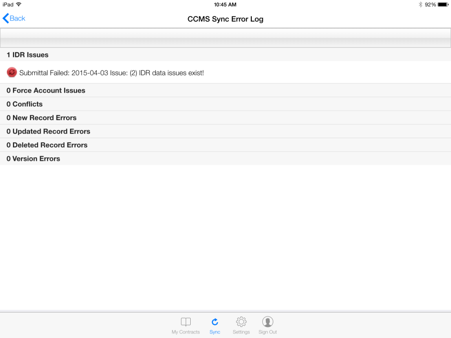 Tap the error record to access Error Details form regarding ‘Sync’ issue