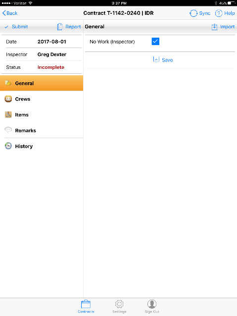 As long as an Inspector is actively registered on a construction project, he or she must enter an IDR for each day (Saturday and Sunday may be optional). In the event the inspector did not work on a particular day, the inspector will enter a No Work IDR.