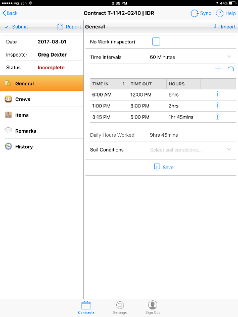 Figure 15 - Inspector Time entered on IDR General tab screen