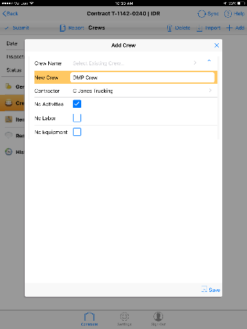 - Check the No Activities, No Labor or No Equipment box if any do not apply for the crew.