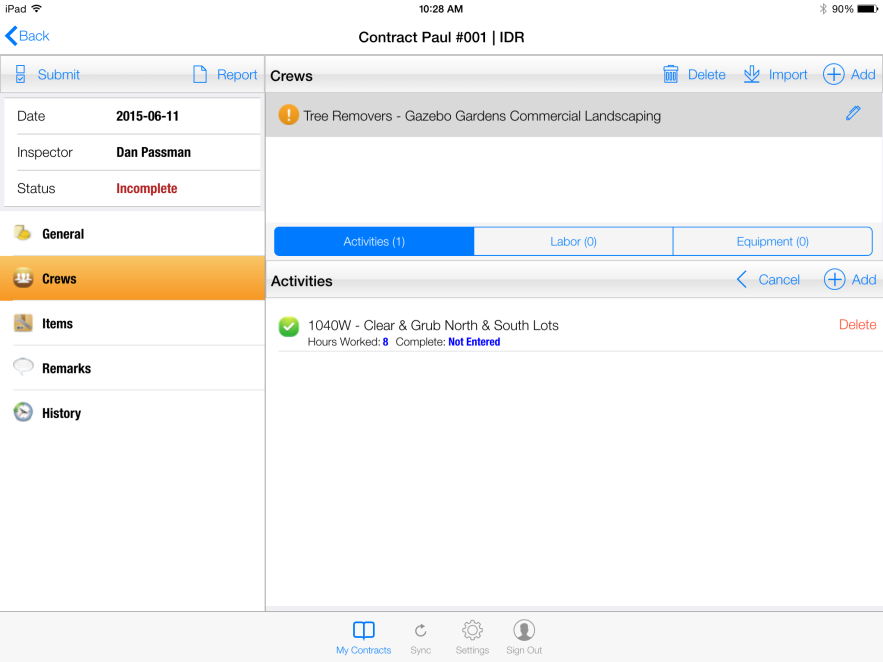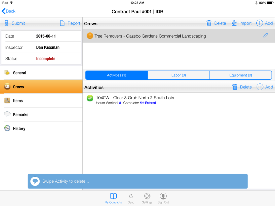 Depending on the state of the IDR (incomplete, missing, etc), you may delete an IDR Crew Activity record. This action removes only the IDR crew activity, not the project activity itself.