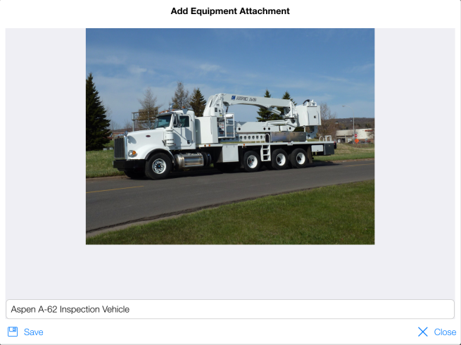 - In Add Equipment Attachment form, enter caption regarding photo in the text box