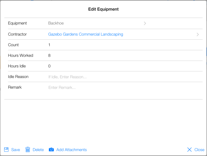 - Tap Add Attachments button on Edit Equipment form