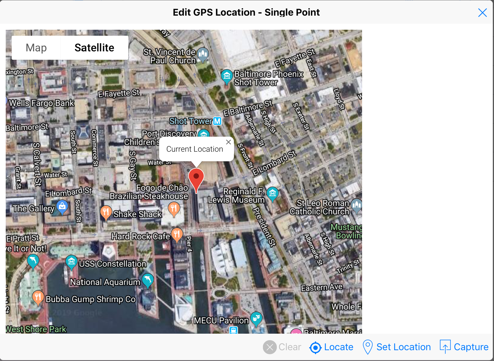 - Location Button: Use the locater button to load the mapping form to capture current location details.