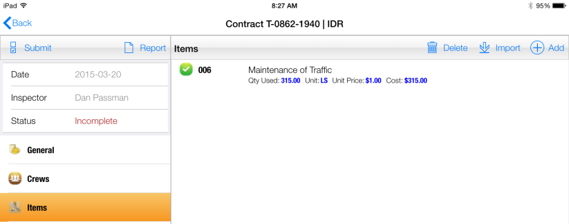 No matter which set up is chosen for a contract, the method to add, edit or delete Items from an IDR is the same.