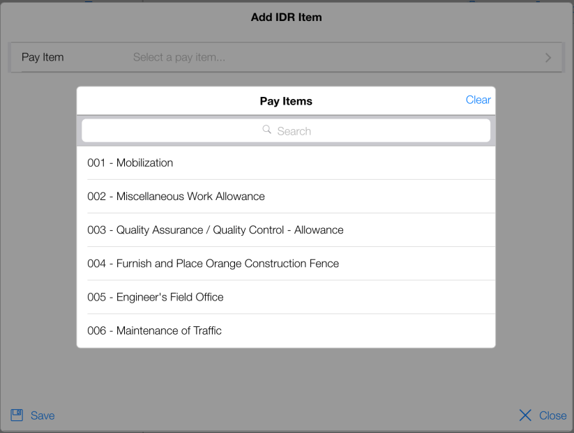 Note: You can click the Search bar and quickly filter down the list with a key-in of a portion of the pay item's number or description.