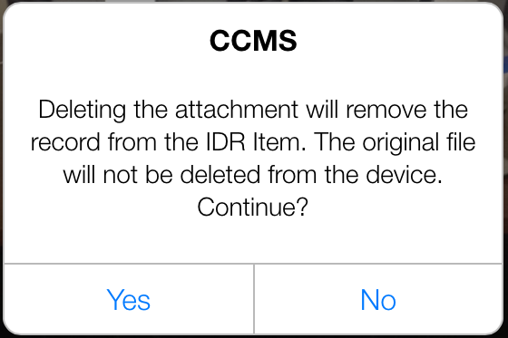 - Tap Camera button on IDR Item Record entry with attachment to delete