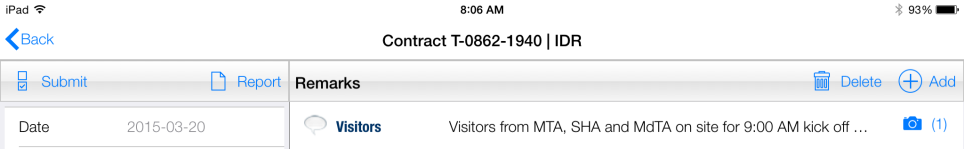 - Tap the Add Attachments button on the Edit IDR Remark form