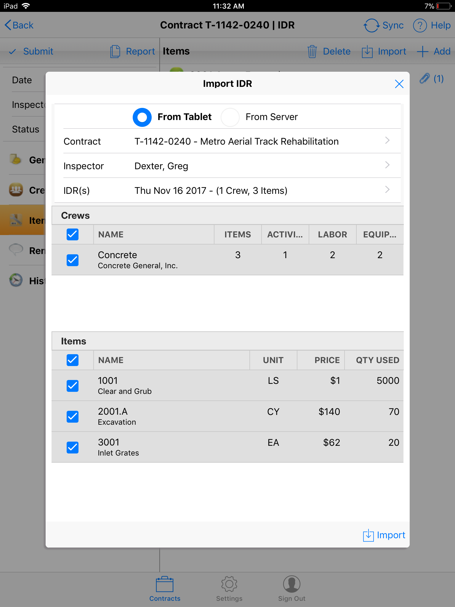 - Select the Inspector and IDR Date. Please note, an IDR must have at least one Item record or one Crew record to be displayed in the list.