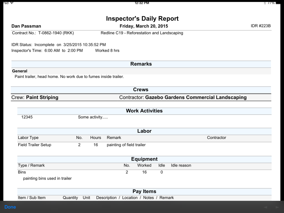 Figure 120 - IDR Report. Use arrows to scroll pages