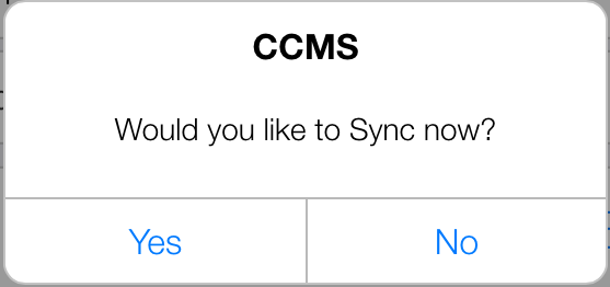 - Tap Yes to CCMS Sync Message to initiate Sync