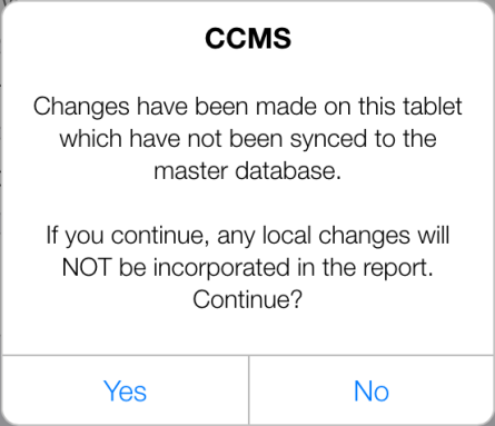 Figure 119 - Tap Yes to Sync the tablet with master database