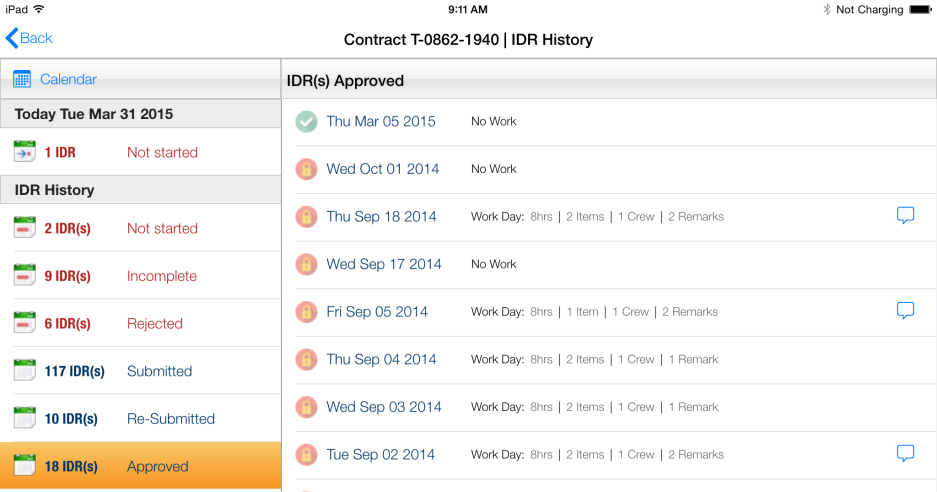 Any IDR in the List View that shows the following lock icon is known as ‘Locked’ and is associated with a previous progress payment period. Locked IDRs may be viewed but may not be modified.